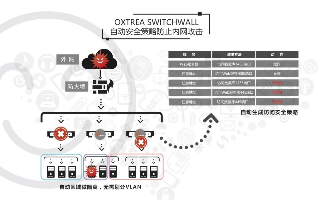 以欧乐影院 可信防御系统的OSW-2800系列为例,单台设备提供48个千兆接口用于微隔离。