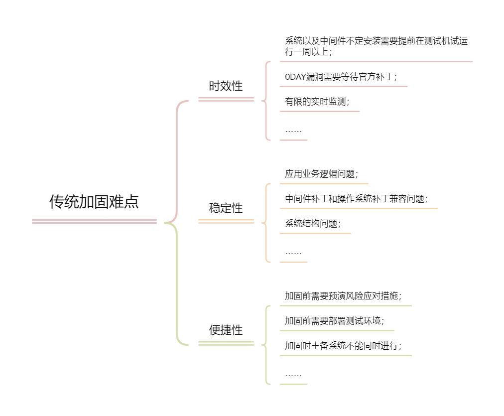 传统加固方法在实施效率、对业务的影响、应对新威胁的灵活性和系统复杂多变方面存在一系列挑战。