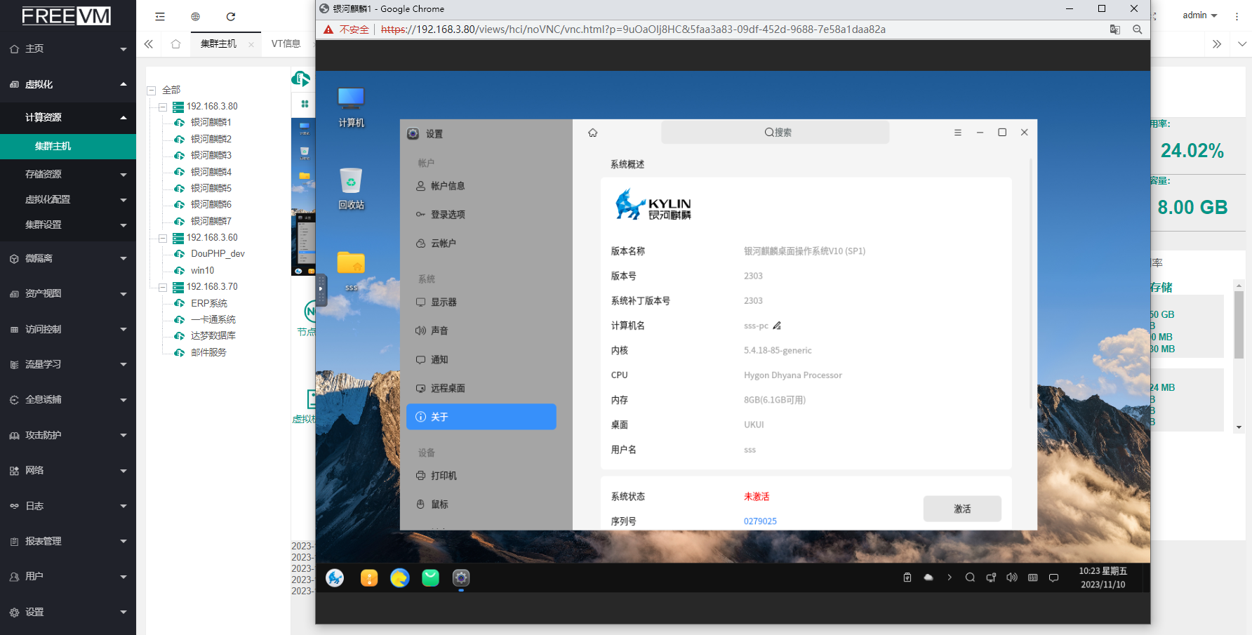 2. 支持国产海光处理器、信创操作系统:FreeVM特别支持国产芯片厂商海光处理器以及国产信创操作系统,为国内欧乐影院 提供了更多选择。这不仅降低了欧乐影院 的IT成本,还提升了硬件和软件的兼容性,为用户提供了更加灵活的部署环境。